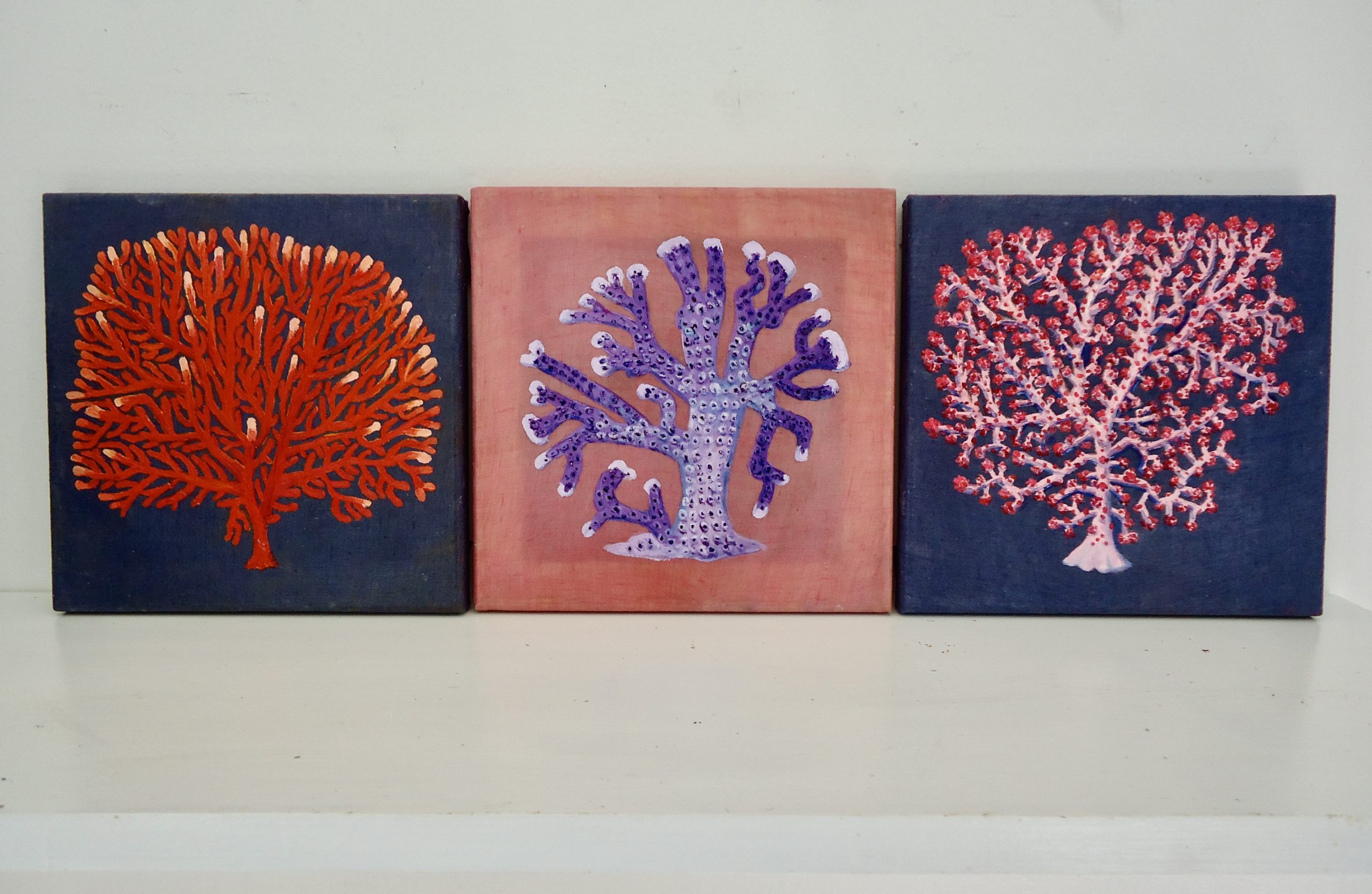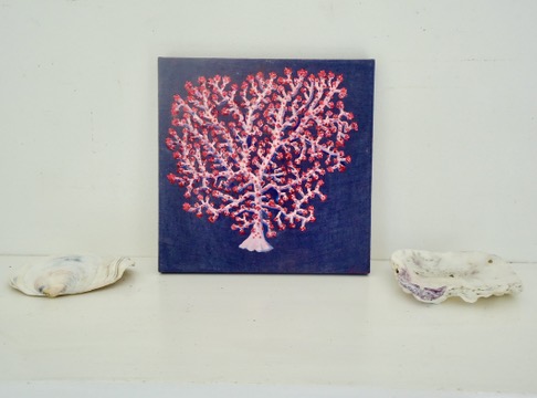 bubblegum coralĀ oil painting on linen 8″ x 8″ free USA shipping