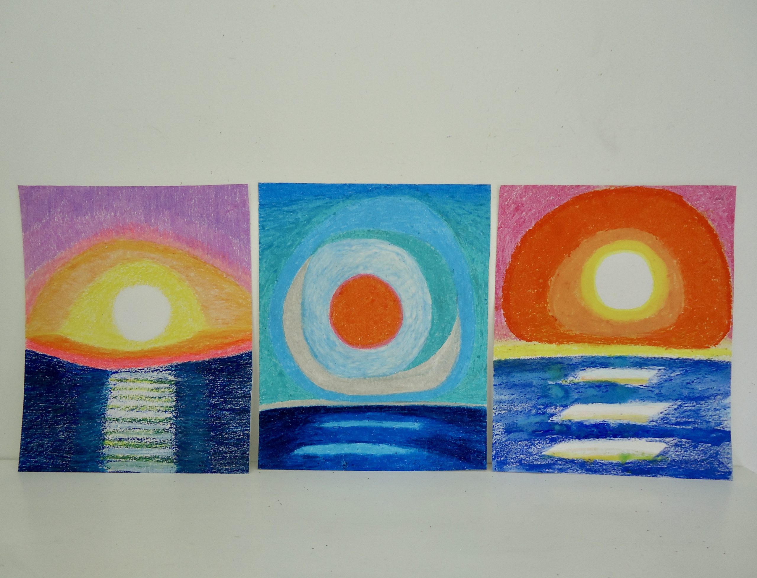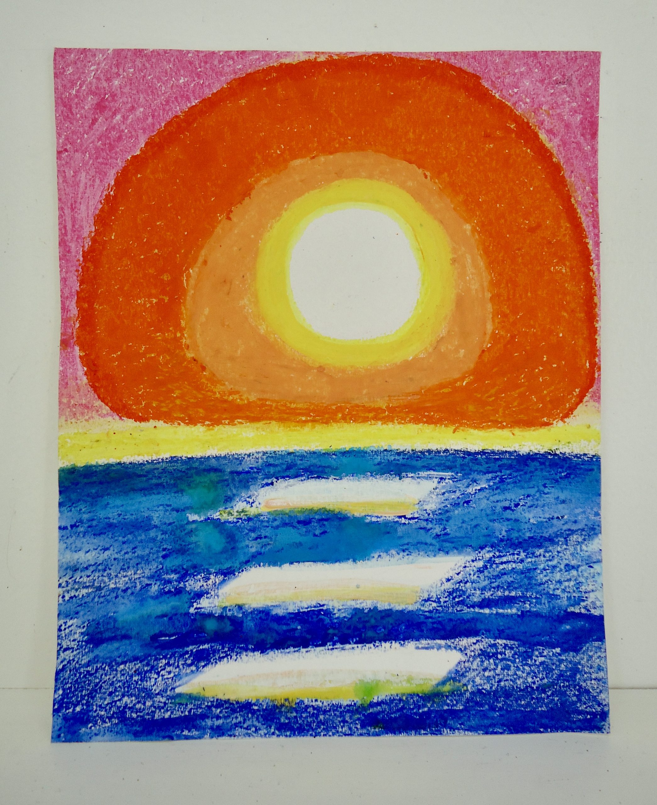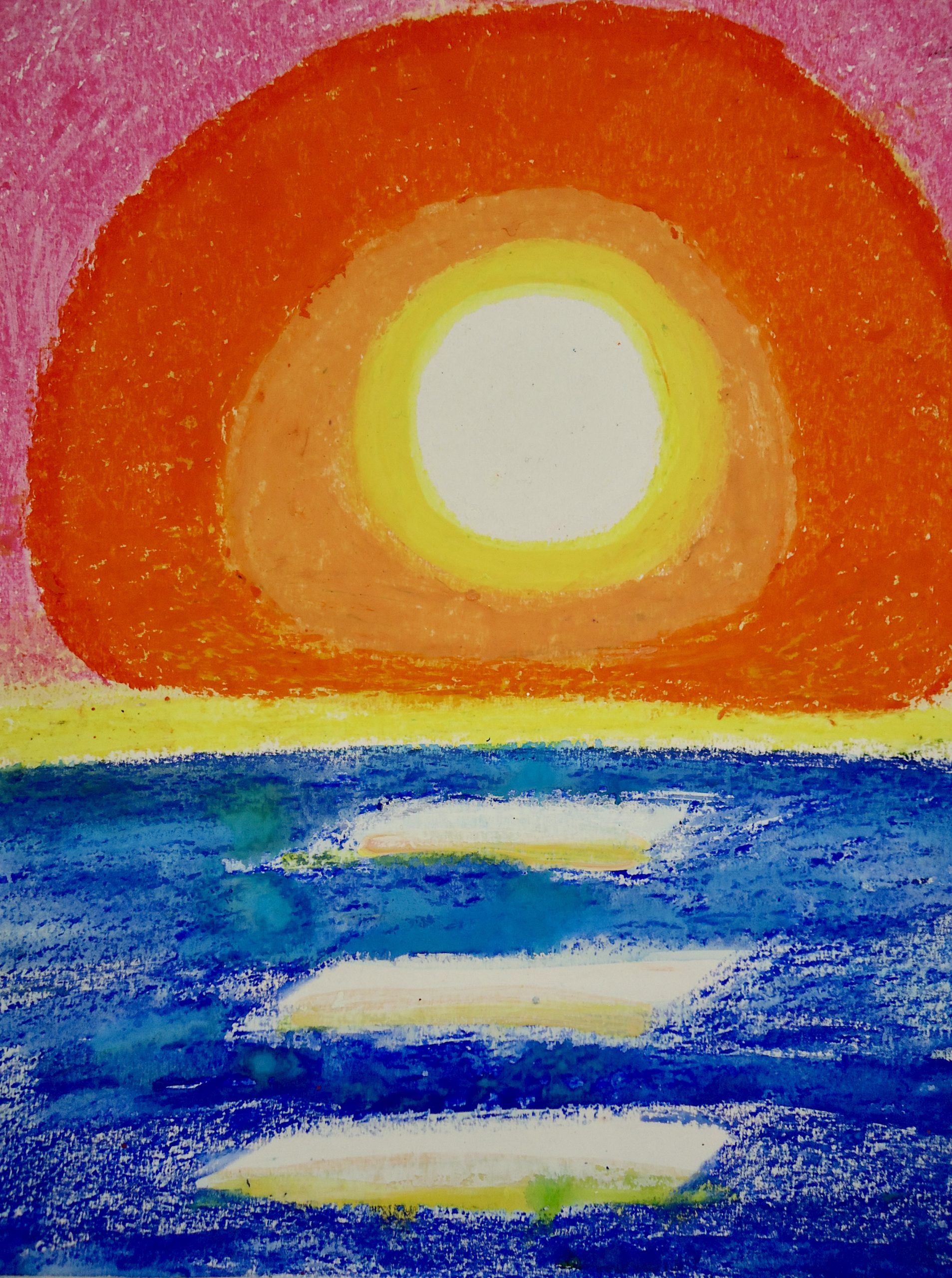 sunset 3 oil pastel & gouache on paper 8″ x 10″ free USA shipping